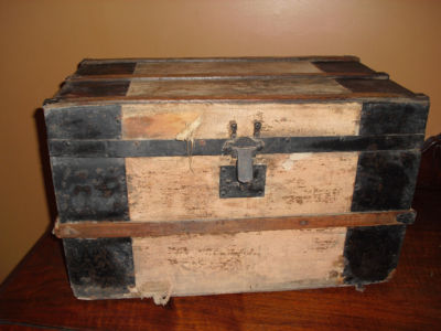 Title (ebay affiliate link): antique original small doll child size trunk estate flat top 20"x12"x11"old