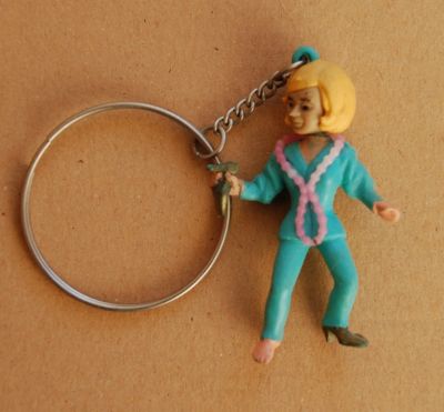 VINTAGE 1960s THUNDERBIRDS LADY PENELOPE FIGURE KEYCHAIN KEYRING