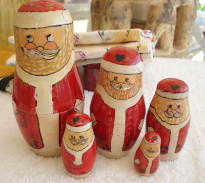Title (ebay affiliate link): ANTIQUE VINTAGE 5 PCS SANTA CLAUSE PAINTED RUSSIAN STACKING DOLLS NESTING DOLLS