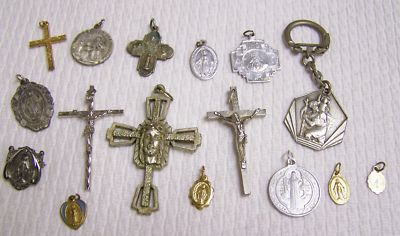 Title (ebay affiliate link): Vintage Religious Holy Medal Gold Cross Lot Key Chain St Mary Silver Metal