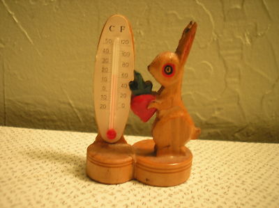 VINTAGE THERMOMETER WOODEN BUNNY RABBIT OLD SCHOOL