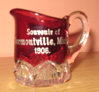 Vermontville, Michigan 1906 Souvenir Cranberry Glass