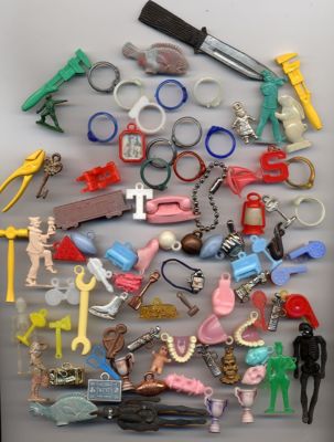 Vintage charms, gumball prizes, toys, etc. Teeth, rings, watch