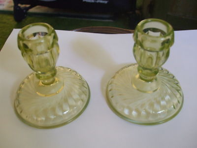 Title (ebay affiliate link): VINTAGE PAIR OF GREEN DEPRESSION GLASS CANDLE HOLDERS