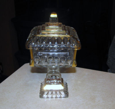 Title (ebay affiliate link): VINTAGE CRYSTAL PEDESTAL CANDY DISH WITH LID GOLD TRIM TEAR DROP & DIAMOND