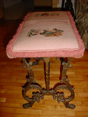 Title (ebay affiliate link): ANTIQUE VICTORIAN NEEDLEPOINT HUMMEL ORNATE WROUGHT / CAST IRON BENCH CLAW FEET