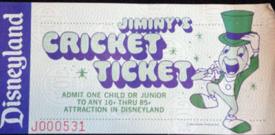 Title (ebay affiliate link): DISNEYLAND TICKET DISNEY JIMINY'S CRICKET TICKET PRE 1975 JUNIOR / CHILD'S COOL