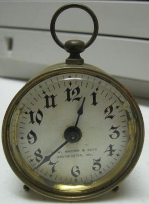 Title (ebay affiliate link): ANTIQUE 1908 TABLE CLOCK T.W. MATHER & SONS WESTMINSTER MD-MARYLAND WORKS!