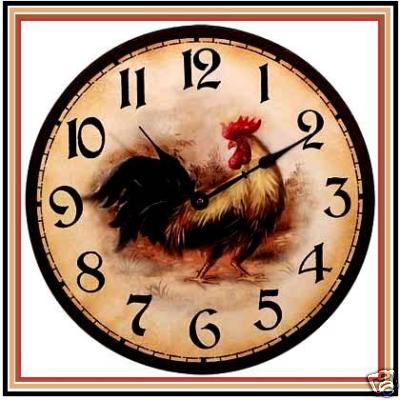 Title (ebay affiliate link): Antique-Finish Rooster/Chicken Muted Colors Wall Clock