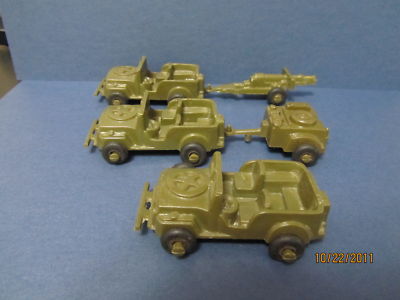 Vintage 50's Lido Army Jeep cannon trailer lot hard plastic