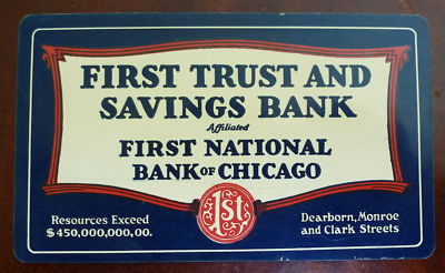 Title (ebay affiliate link): Vintage 1928 Chicago First Trust & Savings Bank Advertising Celluloid Calendar
