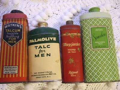 Title (ebay affiliate link): Talcum Power Tins, Medicine Drug Store, Pharmacy, Old Advertising Talc Tin