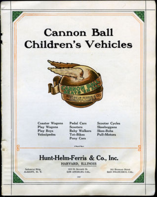 Title (ebay affiliate link): PEDDLE CAR CATALOG 1927 CANNON BALL CHILDREN'S VEHICLES Hunt-Helm-Ferris TOYS