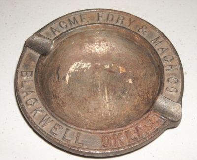 Antique Advertising Cast Iron Ashtray ACME FOUNDRY MACHINE Co BlackWell Oklahoma