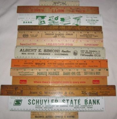 Title (ebay affiliate link): VINTAGE LOT ADVERTISING RULERS GROCERY STORE GAS OIL POLITICAL OLD WOOD METAL