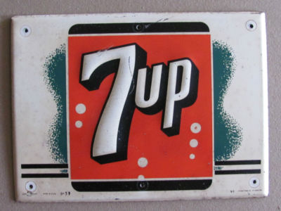 Title (ebay affiliate link): 1953 SEVEN UP 7 UP EMBOSSED TIN LITHO SIGN ! 9 1/2" x 13" *NO RESERVE*