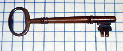 Antique Vintage old HUGE solid brass skeleton key barrel furniture cabinet lock