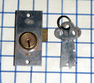 Antique Vintage old flat skeleton key and lock furniture cabinet fancy box