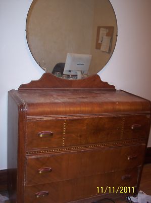 Title (ebay affiliate link): Waterfall Antique Dresser With Mirror and image on drawer
