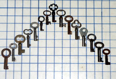 Antique Vintage old tiny small baby skeleton key lot furniture cabinet barrel