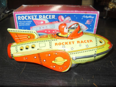 Title (ebay affiliate link): SCHYLLING FRICTION POWER ROCKET RACER TIN TOY ROCKET MAKES MOTOR NOISE