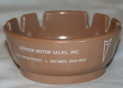 DERROW MOTOR Defiance 1960 MINT brown ashtray PONTIAC