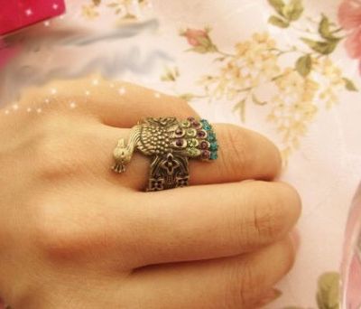 Title (ebay affiliate link): Peacock Antique Colorful CZs European Retro Ring Z496