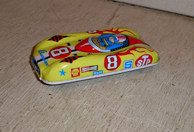 Title (ebay affiliate link): Vintage made in Japan Tin Litho 4 inch STP,Shell,Champion,B&M Racing Car exc!