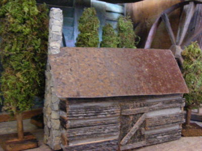 Title (ebay affiliate link): HANDMADE LOG CABIN W STONE CHIMNEY FARM PAT BROYLES