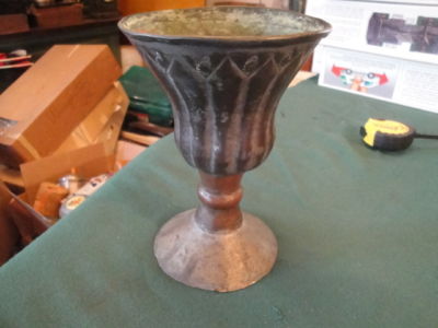 antique vintage primitive 1800s hand crafted egyptian brass copper chalice cup