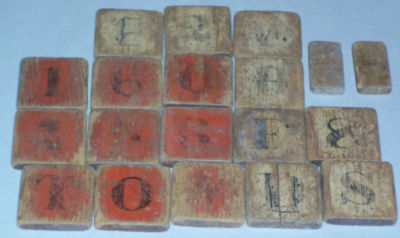 Antique Wooden Blocks - Numbers and Letters