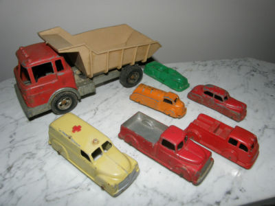 Vintage Antique Tootsietoy Renwal HUBLEY Lot of 7 toy cars Ambulance Fire truck