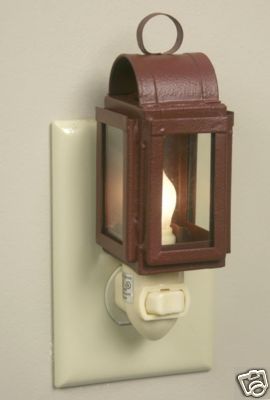 Primitive Metal Lantern Night Light Barn Red