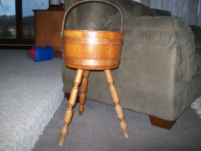 Vintage wooden pail/sugar bucket/sewing basket/planter/table base w legs
