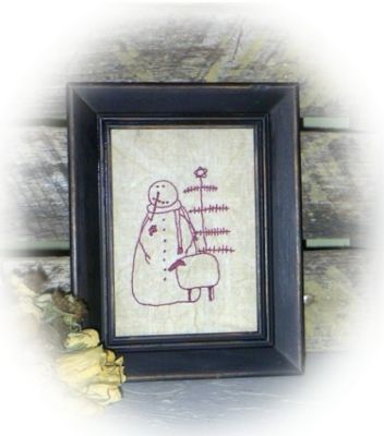 Primitive REDWORK Fir Tree ~ Snowman ~ Sheep Winter Stitchery ~ Christmas