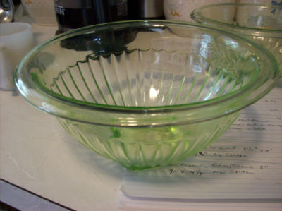 Green Depression Glass Bowl 9" x 4 1/4" no damage