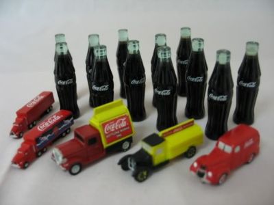 Title (ebay affiliate link): NEW Coca Cola 12 Tiny Bottle 5 Tiny truck set of 17