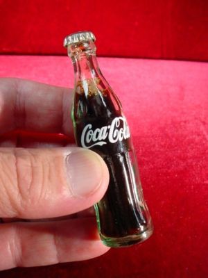 Title (ebay affiliate link): Vintage MINIATURE GLASS COCA COLA BOTTLE Real Cap FULL FLUID 3 Inches Tall