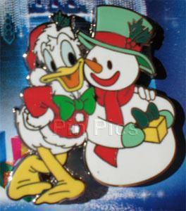 Disney Pin DLR - Happy Holidays ~ Donald Hugging with Snowman in Santa Suit
