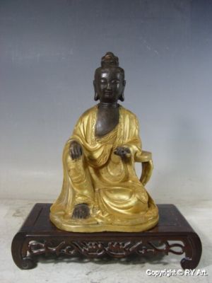 GILDED BRONZE ROYAL EASE KWAN YIN BUDDHA STATUE 11" H