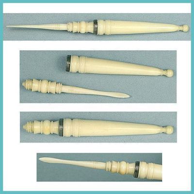 Antique Carved Reversing Sheathed Toothpick * English * Circa 1840