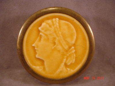 Title (ebay affiliate link): c.1885 J & J.G. LOW PORTRAIT PORCELAIN ART TILE & BRASS TRINKET BOX / POWDER JAR
