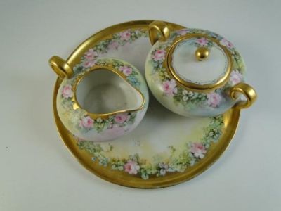 Title (ebay affiliate link): Antique Bavaria Creamer & Sugar Tray Set Pink Rose Hand Painted Vintage