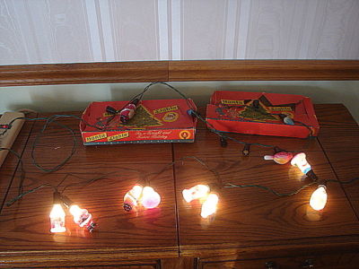 Antique milk glass figural bulbs and 2 WORKING original wires.