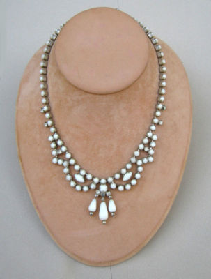 Title (ebay affiliate link): Simple and Elegant Vintage White Milk Glass & Rhinestone Necklace