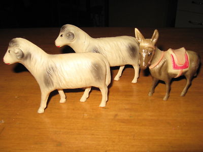 Title (ebay affiliate link): ANTIQUE VINTAGE 2 CELLULOID RAMS & 1 DONKEY NATIVITY OR FARM ANIMALS ALL SIGN!!!