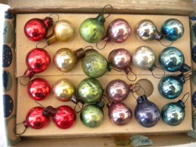 Title (ebay affiliate link): 23 VINTAGE MINIATURE SHINY BRITE FEATHER TREE GLASS ORNAMENTS IN BOX ~ JAPA (#5)
