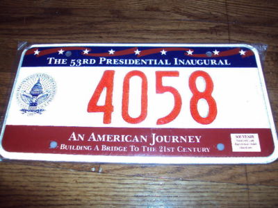 BILL CLINTON INAUGURAL LICENSE PLATES, SET OF 2, NEW IN BAG.CLINTON PLATES, 4058