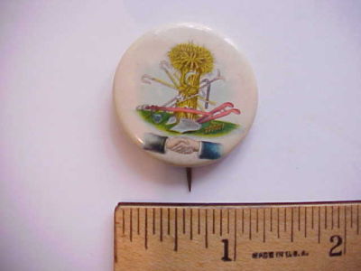 1890-1910 GRANGER FARMERS SOCIETY OR POPULIST MOVEMENT CELLULOID PIN BACK BUTTON