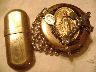 Antique Soldiers Rosary WWII Miraculous Medal Box Military Brass no5 Lighter